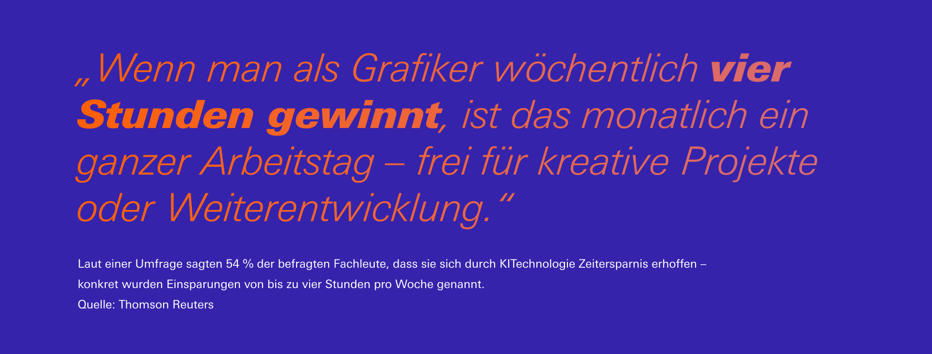 - Mehr Zeit für deine Kernkompetenzen: Während die KI den Text übernimmt, kannst du dich auf das konzentrieren, was du am besten kannst – visuell gestalten.